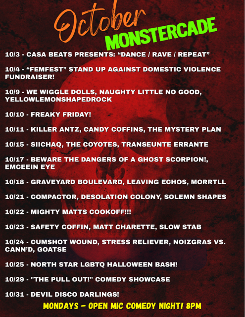 $10 pre-sale tix / $12 @ the door. Get pre-sale tix here! Our spookiest DDD yet, and right on all hallows eve. With our very own pumpkin king DJ Akephalos, and a very special Monster DJ Mikedropz! We'll have new spooky decor and a costume contest with prizes, so don't miss it!